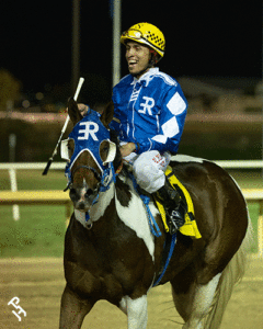 Showing early speed over a muddy track, Rosario Tijeras crossed the wire first to clinch the 2025 Karen Utecht Memorial Stakes. The race for 3-year-old and older Paints and Appaloosas took place October 18 at Lone Star Park in Grand Prairie, Texas, and featured an all-APHA field.