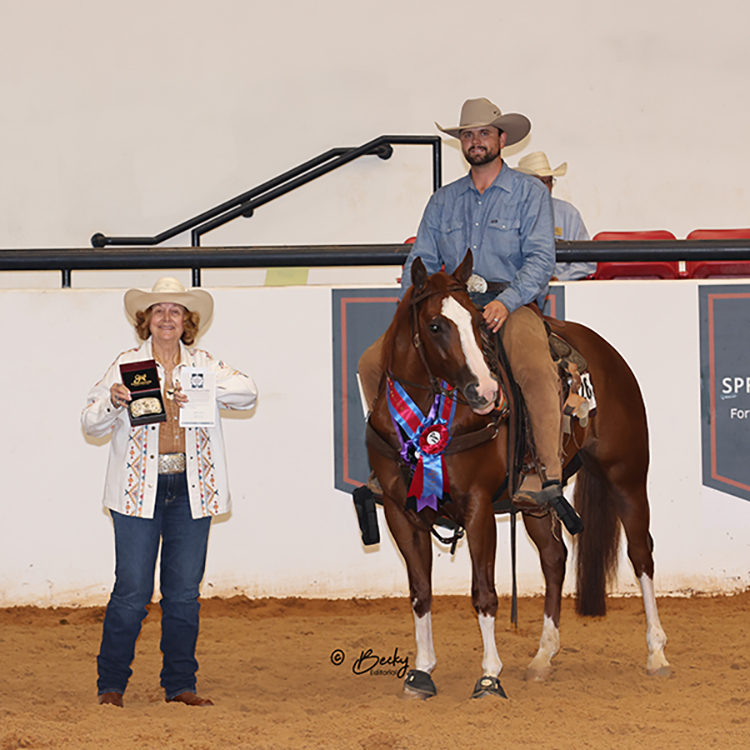Topping the PBRIP 1D division and earning 149 total points, Speedin In Traffic and owner Carol Waters of Red Rock, Oklahoma, won the 2024 PBRIP Year-End Championship title. This award recognizes the Paint Barrel Racing Incentive Program’s highest total point-earner.